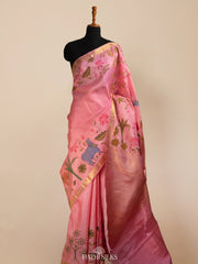 Pink Pichwai Handpainted Kanjivaram Silk Saree