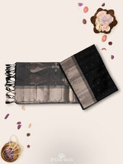 Black colour body with grey Soft Silk saree
