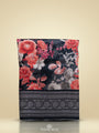A handwoven Tussar saree in deep black, dotted with silver buttas and delicate floral prints across the body. The rich silver zari pallu enhances its luxurious appeal, framed with a zari-accented satin border that adds subtle sophistication. Paired with a self-coloured blouse featuring a matching satin and zari border, this saree drapes beautifully, making every moment feel special.