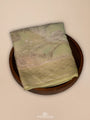 A Rangkat georgette saree in soft shades of pista green, green, and beige, with a silver zari border that catches the light subtly. The body’s crepe-like weave adds gentle texture across the drape, while the flowing pallu enhances its graceful movement. Paired with a matching pista green blouse, this saree feels understated yet refined.