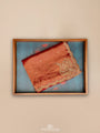 A red tissue organza saree that carries a soft shimmer that moves with the light, and the zardosi hand embroidery adds just enough richness to make every detail feel intentional. The scalloped edges give it a graceful, almost fluid finish. Paired with a red and gold Banarasi brocade blouse touched with multicolour meenakari, the ensemble feels like a blend of tradition and artistry, perfect for someone who loves pieces that stand out without trying too hard.